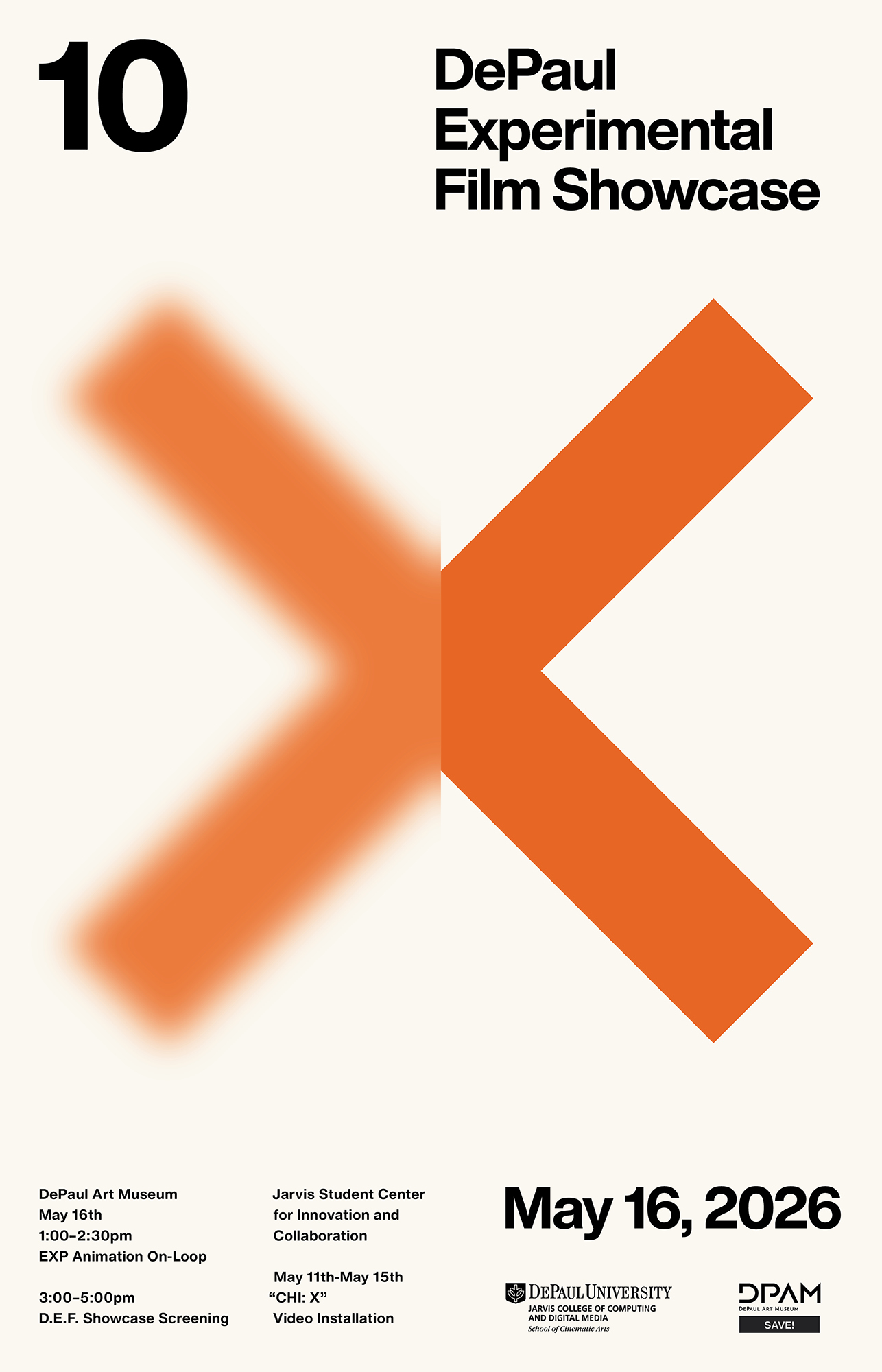 The showcase films were created by DePaul University School of Cinematic Arts students in Experimental Filmmaking I and Experimental Filmmaking II classes.
