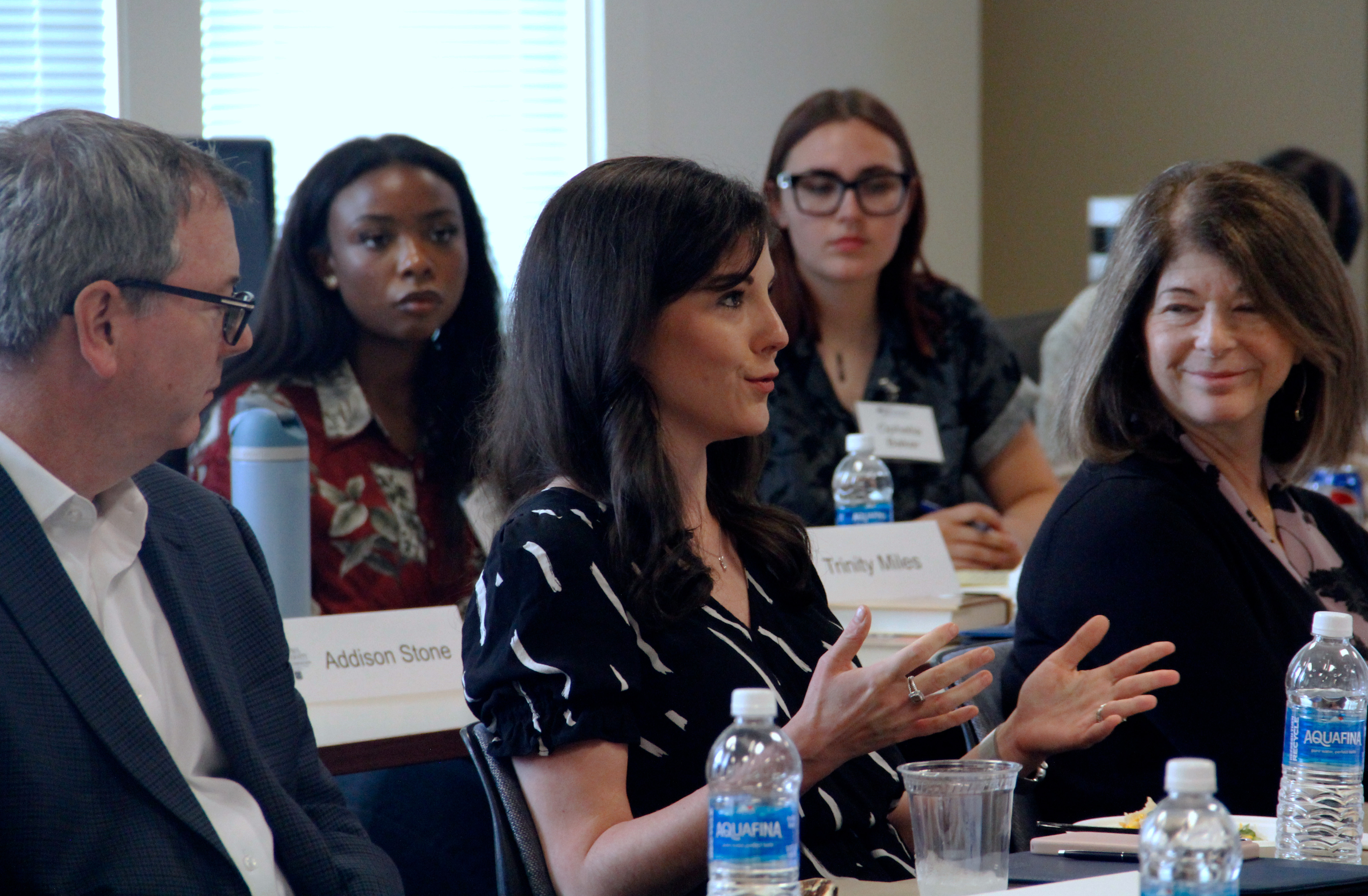 Journalist Stephanie Streff speaks in a panel on July 15, 2025. Streff attended the panel, along with fellow journalists, to speak to students. (Aubreonna Chamberlain/DePaul Student Photo Agency)
